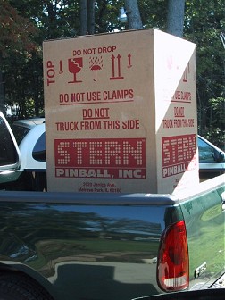 The machine was delivered by truck directly from the Stern Factor on October 5th, 2001. Not bad for a machine that came off the line on October 3rd! I was sitting in my office (which is above my garage), and received a phone call "Hello Mark, this is Joe from R&L trucking. Can you look out the window and tell me if you see a big rig sitting in front of your house?". A quick glance out the window confirmed that my game was here!