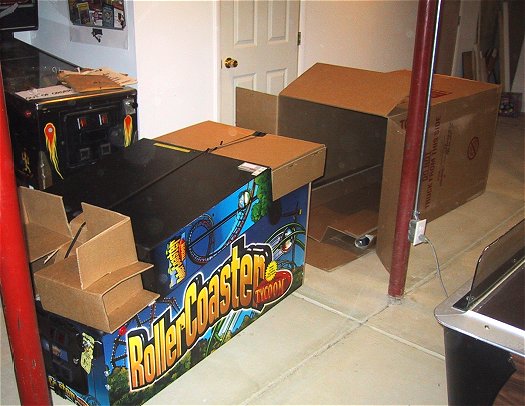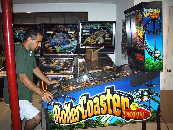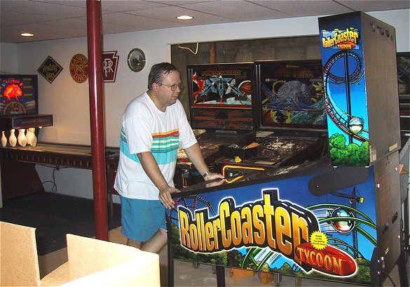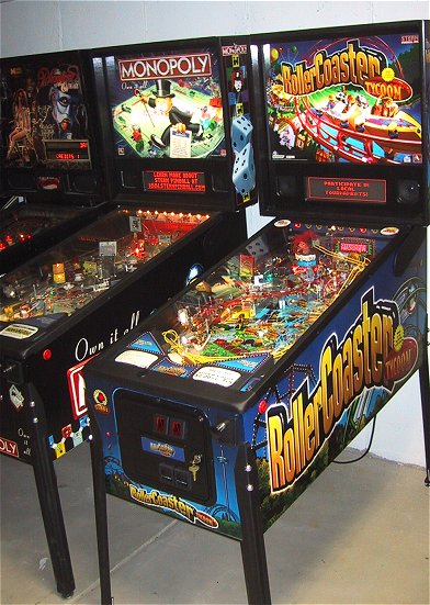 Once again, I went out on the proverbial limb and bought a pinball machine that I hadn't seen or played. Based on the positive reports of the prototype game in the Chicago suburbs as reported on rec.games.pinball and the sample games delivered to England, I once again plunked down my money sight unseen. With Monopoly it was because I thought this might be my last chance to get a NIB machine, not knowing if Stern was going to make in one more year. They seem to have thrived last year and this year due to the success of Monopoly (and people like me who bought them NIB!) and I think they'll be around for at least a few more years. Loving Monopoly as much as I do, this was a "no brainer", and from the first few games, it looks like RCT is as good, if not better, than Monopoly.