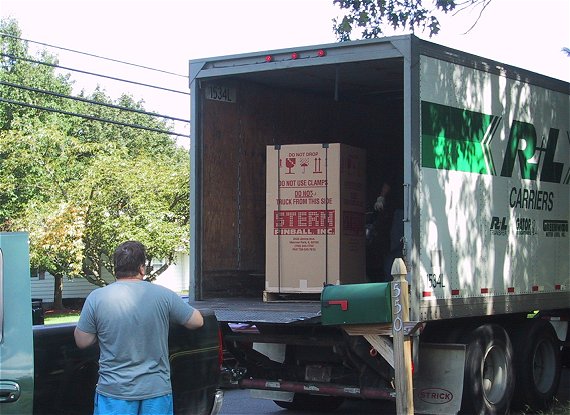 Deja vue all over again... Just as with Monopoly, the truck stopped out in the street and we transferred the box from the truck into my pickup for the final 300' ride down the driveway. This time at least, it was shipped on a pallet, Monopoly was just the box. |